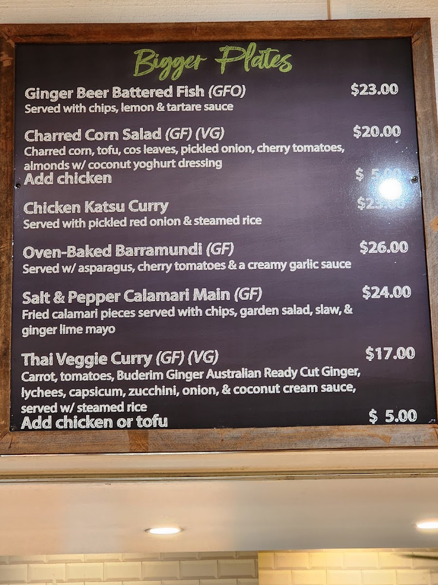 The Ginger Cafe excels in offering a diverse menu that caters to a variety of palates. From delicious bakery items like the fluffy Banana Bread and scrumptious Ginger Scones, which are a perfect companion to your morning coffee, to a tempting Children's Menu featuring favorites like Fish and Chips and Mac & Cheese, there’s something here for everyone. But the sound of sizzling dishes continues with their acclaimed Ginger Beer Battered Fish. Priced at A$23.00, it's a juicy fillet encased in a crisp batter that melts in your mouth, served alongside perfectly cooked, golden chips. You might also crave the Thai Veggie Curry for a burst of flavor, or treat yourself to the Chicken Katsu Curry for a comforting, hearty meal.